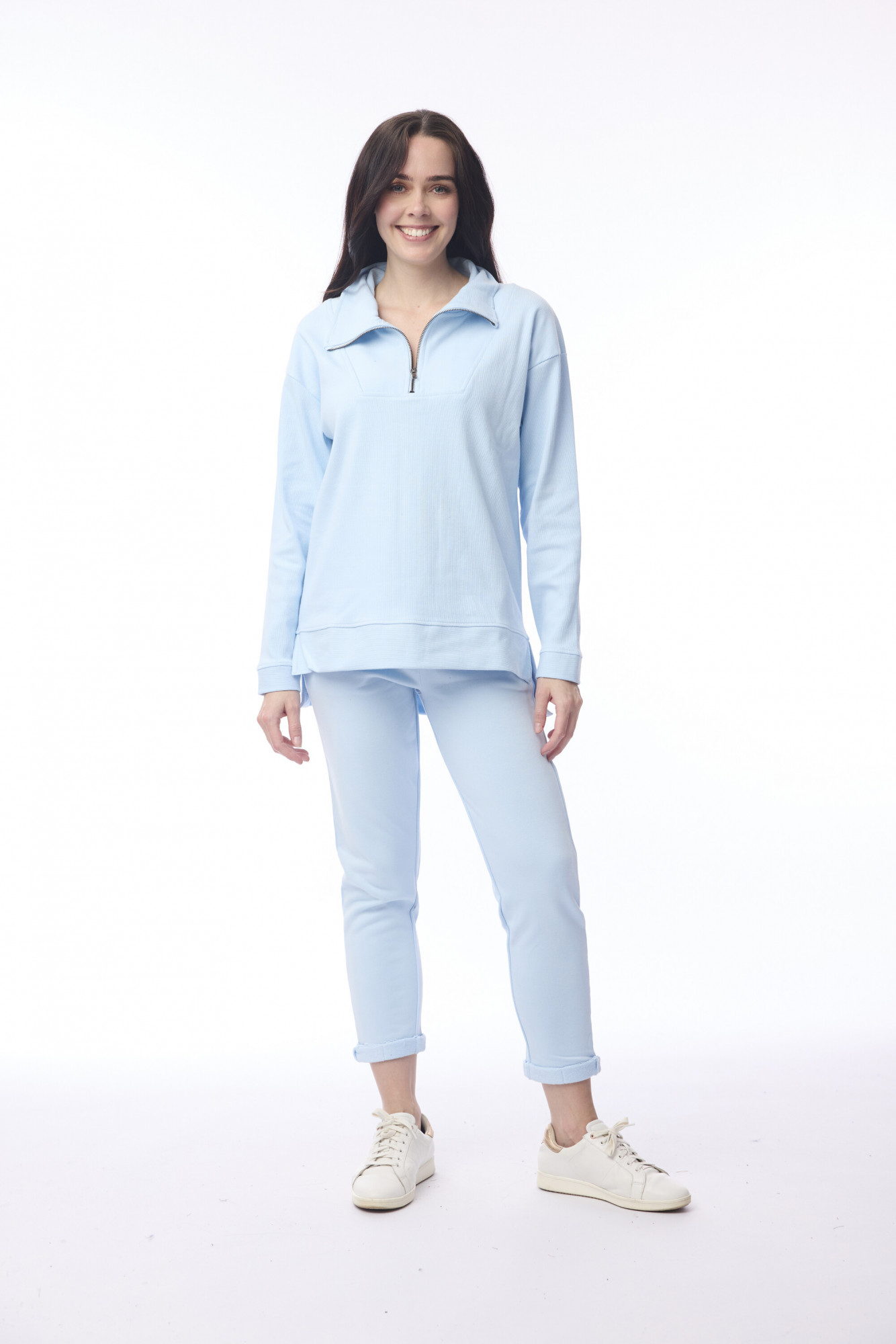 Our Terry Knit Sweat Shirt with zip is a cozy and versatile addition to your winter loungewear collection. Crafted from 100% cotton, it offers a soft feel and breathable comfort. Designed in a relaxed fit, it features a zip neckline, high collar, and ribbed detailing at the neck, hem, and cuffs for a clean finish. Perfect for layering or wearing on its own, this sweatshirt is available in seven versatile colorways.