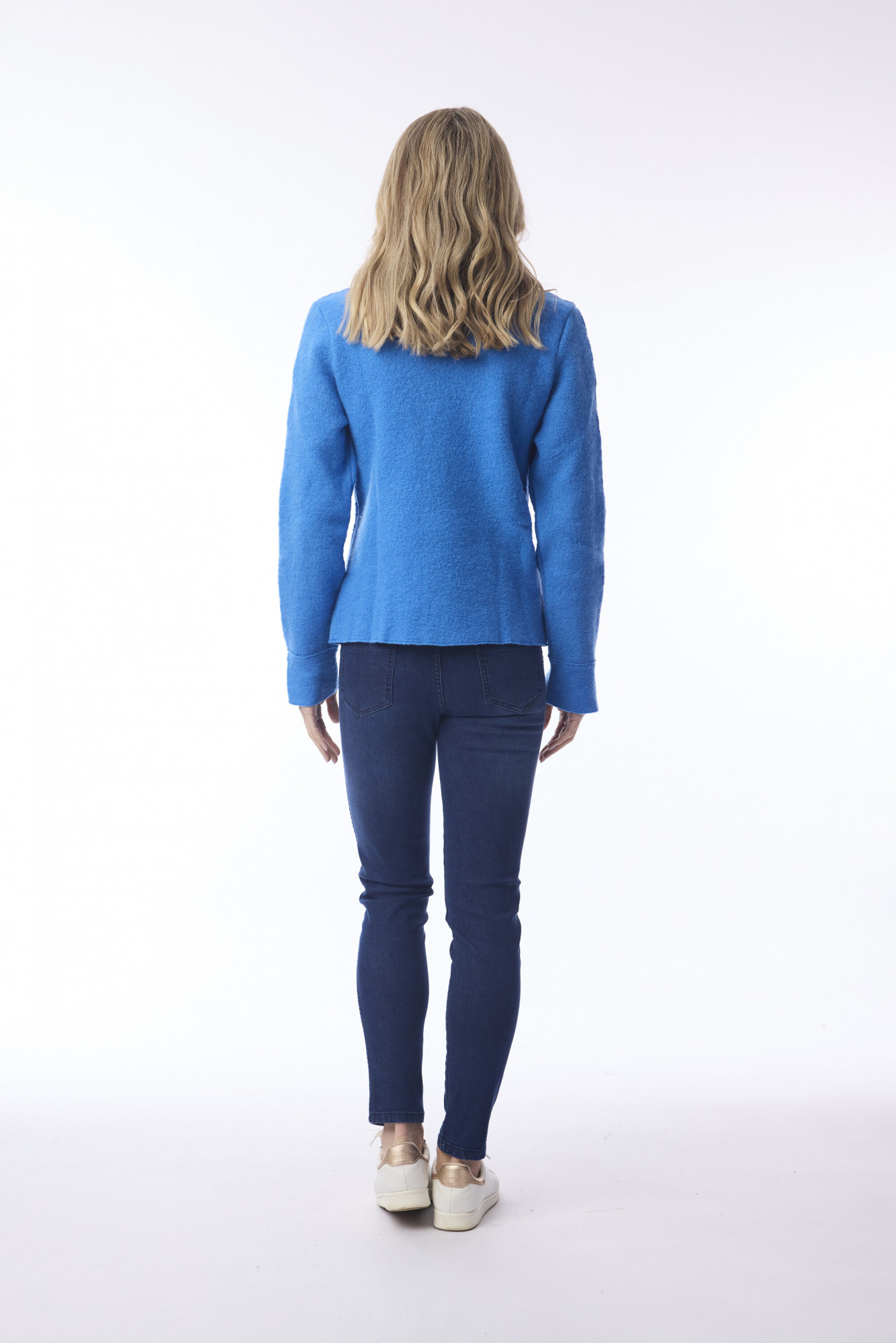 This wool sweater blends comfort with understated detail in a relaxed, boxy silhouette. Crafted from 100% wool, it features a round neckline, long sleeves with slightly wider cuffs, and a subtle vertical seam running down the center front. Two patch pockets at the lower front add both function and style, while the textured surface of the knit brings depth to the design. A versatile piece that pairs effortlessly with casual or elevated looks.