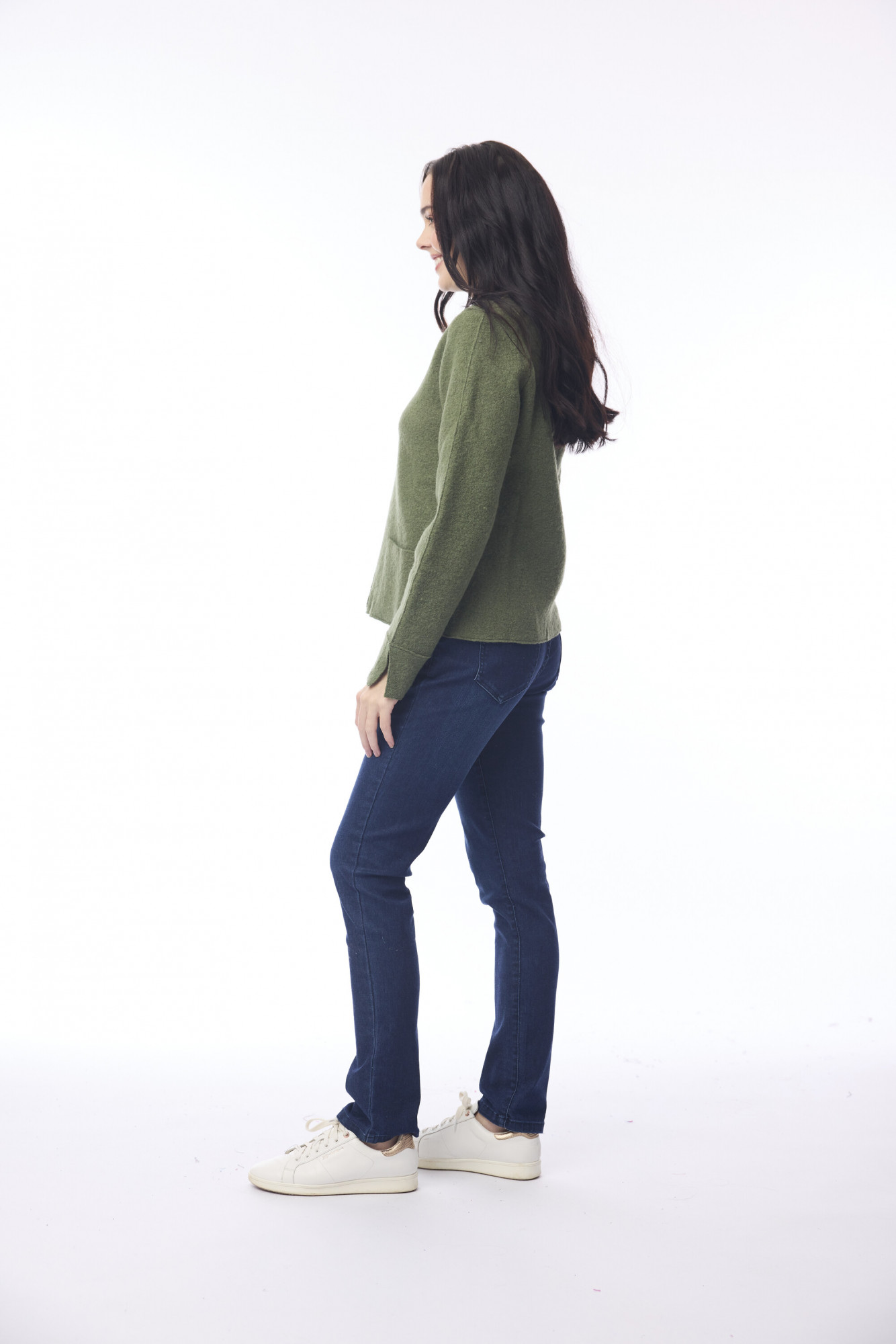This wool sweater blends comfort with understated detail in a relaxed, boxy silhouette. Crafted from 100% wool, it features a round neckline, long sleeves with slightly wider cuffs, and a subtle vertical seam running down the center front. Two patch pockets at the lower front add both function and style, while the textured surface of the knit brings depth to the design. A versatile piece that pairs effortlessly with casual or elevated looks.
